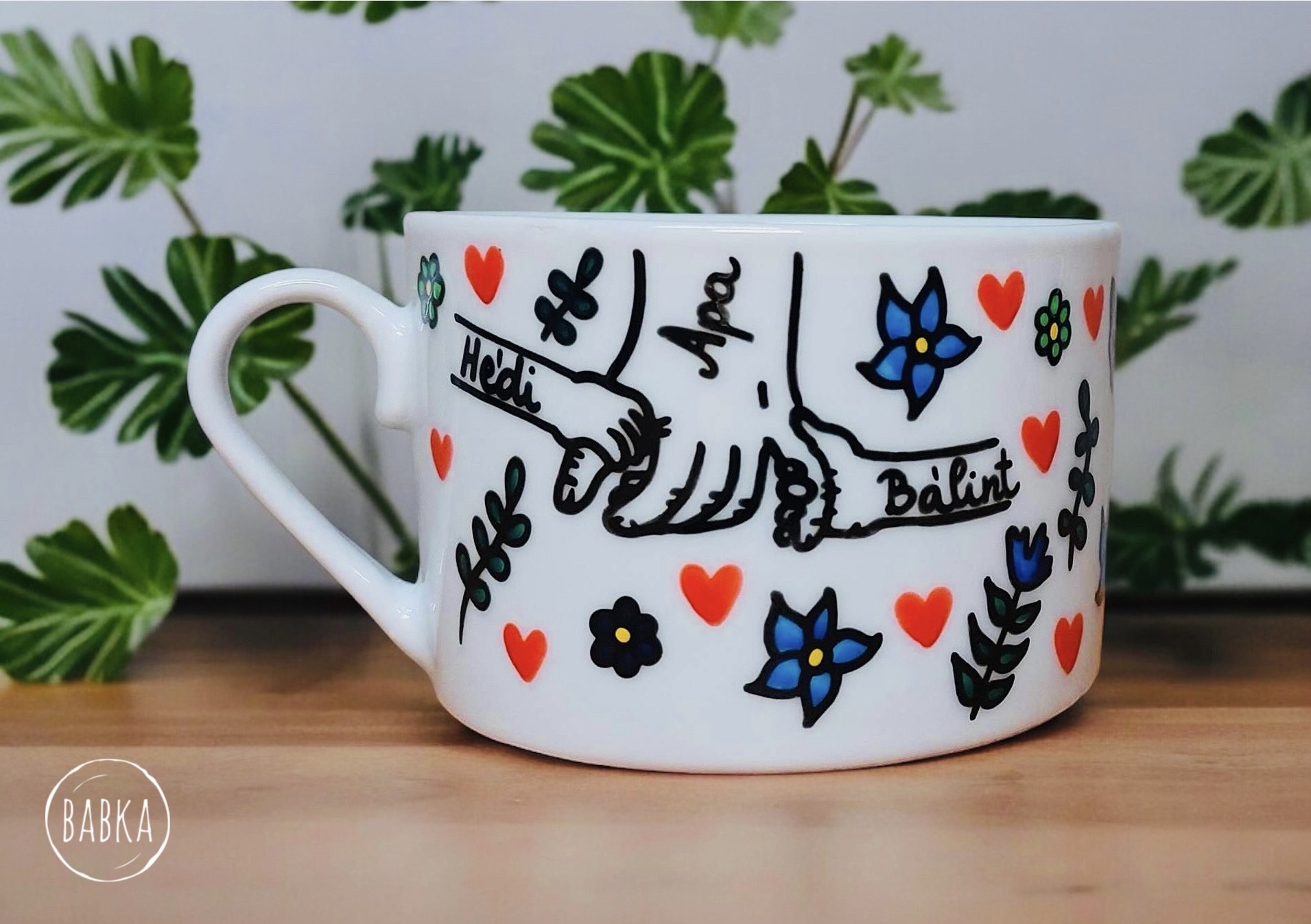 Kézzel festett, egyedi termék. Néhány megjelölt termék kivételével soha nem használunk sablonokat, minden szabad kézzel zajlik. Kérheted különböző variációkban is, egyedi névre szóló feliratokkal, vagy a minta megváltoztatásával is, de tekinthetsz a termékre inspirációként, és megálmodhatsz egy teljesen rád szabott koncepciót. Több mint 800 saját termékünk van, tehát biztosan tudunk majd segíteni. :) Összeállíthatsz saját szetteket is természetesen. Ha nehezen igazodsz el a rengeteg kerámia és porcelán között, akkor ne érezd magad kellemetlenül, ha írsz nekünk! 😊 Mi is elveszünk néha sok mintában, természetes dolog, ha kérdezni szeretnél. A termékeket kézzel festjük, szárítjuk, hőkezeljük, ami időigényes folyamat, de ennek ellenére a 24 órás expressz kiszállításnak hála a legtöbb esetben 3-4 nap alatt meg is kapod a kiválasztott darabokat. A maximum kiszállítási időnk 10 munkanap, de ez ritkán fordul elő, és általában akkor, ha sok darabból álló teljesen egyedi kivitelezést kérsz. Ha nagyon sietned kell, akkor válaszd az SOS kiszállítást, mint feláras szolgáltatást. Ha SOS kiszállítást kérsz, akkor minden más munkát félreteszünk, és azonnal nekilátunk a tiédnek, hogy 1-3 nap alatt megkapd. Tipp: Ha nagyon sürgős, akkor írj nekünk messengeren, ahol gyorsan egyeztethetjük a részleteket, és igyekszünk segíteni, hogy az ajándékozás jól sikerüljön. A termékekhez kérhetsz extrákat, mint díszcsomagolást, a tányérokhoz fali akasztót vagy állványt (Bögrék esetében, ha az állvány opciót bejelölöd, akkor egy fém akasztó kampót teszünk a csomagba.), üdvözlő kártyát, ami egy egyedileg szövegezhető, tartós alumínium kártya (nem papír). Ha bármilyen probléma lenne a rendeléseddel, akkor írj nekünk mielőbb. Fontos tudnod, hogy soha és semmilyen esetben nem érhet kár nálunk! Írj nekünk emailt a hello@babkamanufaktura.hu email címre, és maximum néhány nap alatt releváns választ adunk. Ha sürgős, akkor pedig válaszd a messengert! Ha nagyobb mennyiséget rendelnél viszonteladásra, rendezvényre, tudunk adni egyedi árajánlatot (min. 20 darab tétel előre kifizetett megrendelésétől). Számos kávézó, cukrászda, esküvő, céges buli lett egy kicsit emelkedettebb a Babka termékeitől. Bár kézenfekvő lenne, hogy emailben jelzed az igényt, mégis válaszd inkább ez esetben is a messengert, mert sokkal dinamikusabban tudunk ott egyeztetni. Figyelj, hogy jelentkezz be az üzenet küldésénél, és ne vendégként írj, mert az elveszhet. Nézz körül az oldalon! Bármilyen kérdés, kérés esetén, írj Babkának az oldalon található messenger ikon segítségével, vagy a megadott egyéb csatornák egyikén. (Minden egyéb kérdés tekintetében megtalálod oldalunkon ÁSZF-ünket is.) Ne feledd! A Babkával átadott üzenetekre még évekig emlékezni fognak, és érezni fogják, hogy időt is, kreativitást is áldoztál rájuk. Nem csak letudtad a „feladatot” egy sablonos megoldással. Köszönjük, hogy itt vagy! Jó válogatást, tervezést kívánunk!