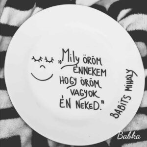Kézzel festett termék. Egyedi, soha nem készül kettő pontosan egyforma. Néhány megjelölt termék kivételével soha nem használunk sablonokat, minden szabad kézzel zajlik. Kérheted különböző variációkban is, egyedi névre szóló feliratokkal, vagy a minta megváltoztatásával is, de tekinthetsz a termékre inspirációként, és megálmodhatsz egy teljesen rád szabott koncepciót. Több mint 800 saját termékünk van, tehát biztosan tudunk majd segíteni. :) Összeállíthatsz saját szetteket is természetesen. Ha nehezen igazodsz el a rengeteg kerámia és porcelán között, akkor ne érezd magad kellemetlenül, ha írsz nekünk! 😊 Mi is elveszünk néha sok mintában, természetes dolog, ha kérdezni szeretnél. A termékeket kézzel festjük, szárítjuk, hőkezeljük, ami időigényes folyamat, de ennek ellenére a 24 órás expressz kiszállításnak hála a legtöbb esetben 3-4 nap alatt meg is kapod a kiválasztott darabokat. A maximum kiszállítási időnk 10 munkanap, de ez ritkán fordul elő, és általában akkor, ha sok darabból álló teljesen egyedi kivitelezést kérsz. Ha nagyon sietned kell, akkor válaszd az SOS kiszállítást, mint feláras szolgáltatást. Ha SOS kiszállítást kérsz, akkor minden más munkát félreteszünk, és azonnal nekilátunk a tiédnek, hogy 1-3 nap alatt megkapd. Tipp: Ha nagyon sürgős, akkor írj nekünk messengeren, ahol gyorsan egyeztethetjük a részleteket, és igyekszünk segíteni, hogy az ajándékozás jól sikerüljön. A termékekhez kérhetsz extrákat, mint díszcsomagolást, a tányérokhoz fali akasztót vagy állványt (Bögrék esetében, ha az állvány opciót bejelölöd, akkor egy fém akasztó kampót teszünk a csomagba.), üdvözlő kártyát, ami egy egyedileg szövegezhető, tartós alumínium kártya (nem papír). Ha bármilyen probléma lenne a rendeléseddel, akkor írj nekünk mielőbb. Fontos tudnod, hogy soha és semmilyen esetben nem érhet kár nálunk! Írj nekünk emailt a hello@babkamanufaktura.hu email címre, és maximum néhány nap alatt releváns választ adunk. Ha sürgős, akkor pedig válaszd a messengert! Ha nagyobb mennyiséget rendelnél viszonteladásra, rendezvényre, tudunk adni egyedi árajánlatot (min. 20 darab tétel előre kifizetett megrendelésétől). Számos kávézó, cukrászda, esküvő, céges buli lett egy kicsit emelkedettebb a Babka termékeitől. Bár kézenfekvő lenne, hogy emailben jelzed az igényt, mégis válaszd inkább ez esetben is a messengert, mert sokkal dinamikusabban tudunk ott egyeztetni. Figyelj, hogy jelentkezz be az üzenet küldésénél, és ne vendégként írj, mert az elveszhet. Nézz körül az oldalon! Bármilyen kérdés, kérés esetén, írj Babkának az oldalon található messenger ikon segítségével, vagy a megadott egyéb csatornák egyikén. Ne feledd! A Babkával átadott üzenetekre még évekig emlékezni fognak, és érezni fogják, hogy időt is, kreativitást is áldoztál rájuk. Nem csak letudtad a „feladatot” egy sablonos megoldással. Köszönjük, hogy itt vagy! Jó válogatást, tervezést kívánunk!