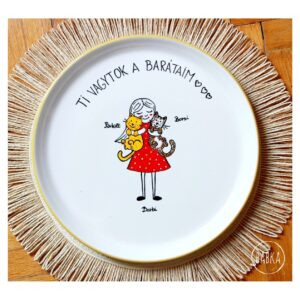 Kézzel festett termék. Egyedi, soha nem készül kettő pontosan egyforma. Néhány megjelölt termék kivételével soha nem használunk sablonokat, minden szabad kézzel zajlik. Kérheted különböző variációkban is, egyedi névre szóló feliratokkal, vagy a minta megváltoztatásával is, de tekinthetsz a termékre inspirációként, és megálmodhatsz egy teljesen rád szabott koncepciót. Több mint 800 saját termékünk van, tehát biztosan tudunk majd segíteni. :) Összeállíthatsz saját szetteket is természetesen. Ha nehezen igazodsz el a rengeteg kerámia és porcelán között, akkor ne érezd magad kellemetlenül, ha írsz nekünk! 😊 Mi is elveszünk néha sok mintában, természetes dolog, ha kérdezni szeretnél. A termékeket kézzel festjük, szárítjuk, hőkezeljük, ami időigényes folyamat, de ennek ellenére a 24 órás expressz kiszállításnak hála a legtöbb esetben 3-4 nap alatt meg is kapod a kiválasztott darabokat. A maximum kiszállítási időnk 10 munkanap, de ez ritkán fordul elő, és általában akkor, ha sok darabból álló teljesen egyedi kivitelezést kérsz. Ha nagyon sietned kell, akkor válaszd az SOS kiszállítást, mint feláras szolgáltatást. Ha SOS kiszállítást kérsz, akkor minden más munkát félreteszünk, és azonnal nekilátunk a tiédnek, hogy 1-3 nap alatt megkapd. Tipp: Ha nagyon sürgős, akkor írj nekünk messengeren, ahol gyorsan egyeztethetjük a részleteket, és igyekszünk segíteni, hogy az ajándékozás jól sikerüljön. A termékekhez kérhetsz extrákat, mint díszcsomagolást, a tányérokhoz fali akasztót vagy állványt (Bögrék esetében, ha az állvány opciót bejelölöd, akkor egy fém akasztó kampót teszünk a csomagba.), üdvözlő kártyát, ami egy egyedileg szövegezhető, tartós alumínium kártya (nem papír). Ha bármilyen probléma lenne a rendeléseddel, akkor írj nekünk mielőbb. Fontos tudnod, hogy soha és semmilyen esetben nem érhet kár nálunk! Írj nekünk emailt a hello@babkamanufaktura.hu email címre, és maximum néhány nap alatt releváns választ adunk. Ha sürgős, akkor pedig válaszd a messengert! Ha nagyobb mennyiséget rendelnél viszonteladásra, rendezvényre, tudunk adni egyedi árajánlatot (min. 20 darab tétel előre kifizetett megrendelésétől). Számos kávézó, cukrászda, esküvő, céges buli lett egy kicsit emelkedettebb a Babka termékeitől. Bár kézenfekvő lenne, hogy emailben jelzed az igényt, mégis válaszd inkább ez esetben is a messengert, mert sokkal dinamikusabban tudunk ott egyeztetni. Figyelj, hogy jelentkezz be az üzenet küldésénél, és ne vendégként írj, mert az elveszhet. Nézz körül az oldalon! Bármilyen kérdés, kérés esetén, írj Babkának az oldalon található messenger ikon segítségével, vagy a megadott egyéb csatornák egyikén. Ne feledd! A Babkával átadott üzenetekre még évekig emlékezni fognak, és érezni fogják, hogy időt is, kreativitást is áldoztál rájuk. Nem csak letudtad a „feladatot” egy sablonos megoldással. Köszönjük, hogy itt vagy! Jó válogatást, tervezést kívánunk!