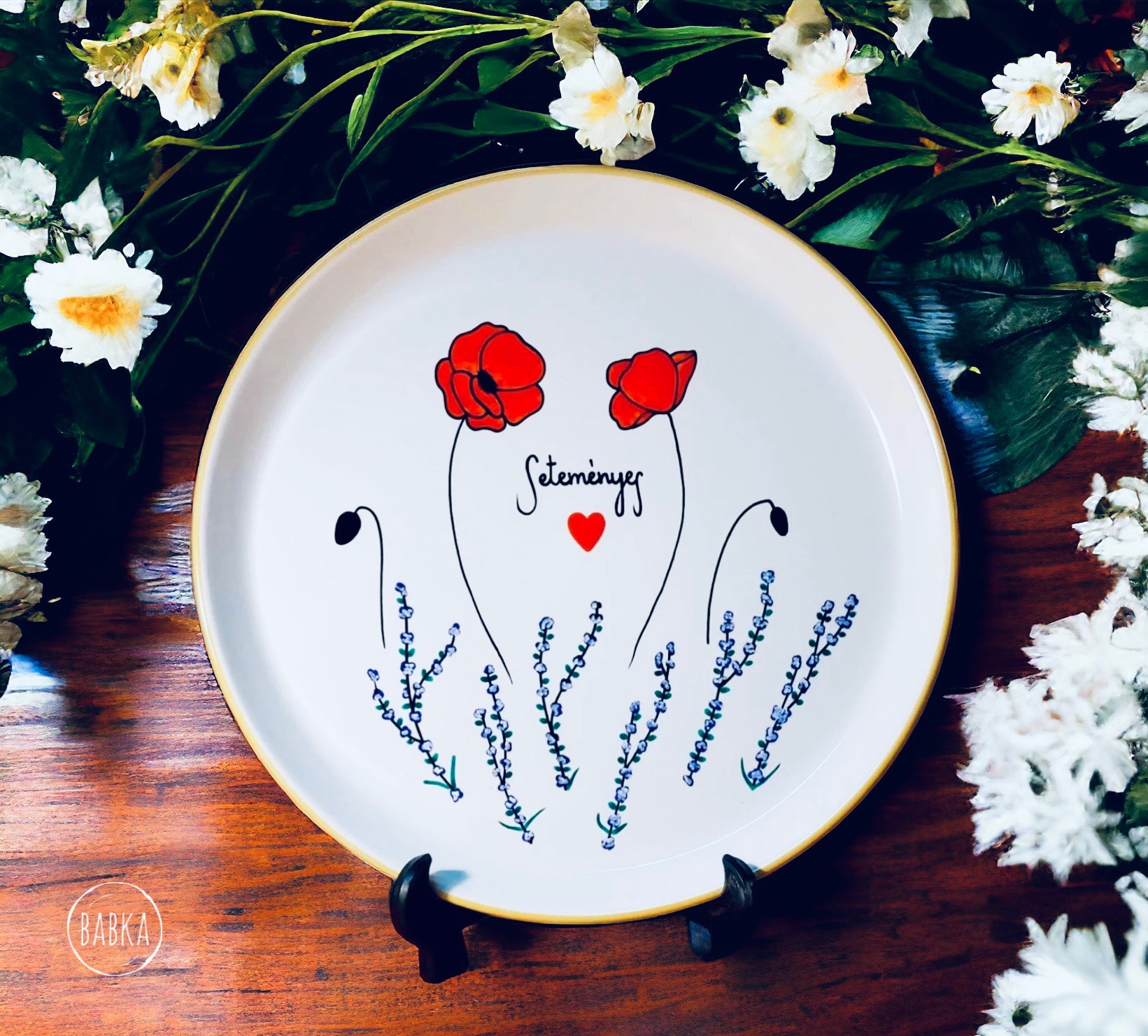 A termékekhez kérhetsz extrákait, mint díszcsomagolást, a tányérokhoz fali akasztót vagy állványt (Bögrék esetében, ha az állvány opciót bejelölöd, akkor egy fém akasztó kampót teszünk a csomagba.), üdvözlő kártyát, ami egy egyedileg szövegezhető, tartós alumínium kártya (nem papír).