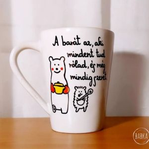 Kézzel festett termék. Egyedi, soha nem készül kettő pontosan egyforma. Néhány megjelölt termék kivételével soha nem használunk sablonokat, minden szabad kézzel zajlik. Kérheted különböző variációkban is, egyedi névre szóló feliratokkal, vagy a minta megváltoztatásával is, de tekinthetsz a termékre inspirációként, és megálmodhatsz egy teljesen rád szabott koncepciót. Több mint 800 saját termékünk van, tehát biztosan tudunk majd segíteni. :) Összeállíthatsz saját szetteket is természetesen. Ha nehezen igazodsz el a rengeteg kerámia és porcelán között, akkor ne érezd magad kellemetlenül, ha írsz nekünk! 😊 Mi is elveszünk néha sok mintában, természetes dolog, ha kérdezni szeretnél. A termékeket kézzel festjük, szárítjuk, hőkezeljük, ami időigényes folyamat, de ennek ellenére a 24 órás expressz kiszállításnak hála a legtöbb esetben 3-4 nap alatt meg is kapod a kiválasztott darabokat. A maximum kiszállítási időnk 10 munkanap, de ez ritkán fordul elő, és általában akkor, ha sok darabból álló teljesen egyedi kivitelezést kérsz. Ha nagyon sietned kell, akkor válaszd az SOS kiszállítást, mint feláras szolgáltatást. Ha SOS kiszállítást kérsz, akkor minden más munkát félreteszünk, és azonnal nekilátunk a tiédnek, hogy 1-3 nap alatt megkapd. Tipp: Ha nagyon sürgős, akkor írj nekünk messengeren, ahol gyorsan egyeztethetjük a részleteket, és igyekszünk segíteni, hogy az ajándékozás jól sikerüljön. A termékekhez kérhetsz extrákat, mint díszcsomagolást, a tányérokhoz fali akasztót vagy állványt (Bögrék esetében, ha az állvány opciót bejelölöd, akkor egy fém akasztó kampót teszünk a csomagba.), üdvözlő kártyát, ami egy egyedileg szövegezhető, tartós alumínium kártya (nem papír). Ha bármilyen probléma lenne a rendeléseddel, akkor írj nekünk mielőbb. Fontos tudnod, hogy soha és semmilyen esetben nem érhet kár nálunk! Írj nekünk emailt a hello@babkamanufaktura.hu email címre, és maximum néhány nap alatt releváns választ adunk. Ha sürgős, akkor pedig válaszd a messengert! Ha nagyobb mennyiséget rendelnél viszonteladásra, rendezvényre, tudunk adni egyedi árajánlatot (min. 20 darab tétel előre kifizetett megrendelésétől). Számos kávézó, cukrászda, esküvő, céges buli lett egy kicsit emelkedettebb a Babka termékeitől. Bár kézenfekvő lenne, hogy emailben jelzed az igényt, mégis válaszd inkább ez esetben is a messengert, mert sokkal dinamikusabban tudunk ott egyeztetni. Figyelj, hogy jelentkezz be az üzenet küldésénél, és ne vendégként írj, mert az elveszhet. Nézz körül az oldalon! Bármilyen kérdés, kérés esetén, írj Babkának az oldalon található messenger ikon segítségével, vagy a megadott egyéb csatornák egyikén. Ne feledd! A Babkával átadott üzenetekre még évekig emlékezni fognak, és érezni fogják, hogy időt is, kreativitást is áldoztál rájuk. Nem csak letudtad a „feladatot” egy sablonos megoldással. Köszönjük, hogy itt vagy! Jó válogatást, tervezést kívánunk!